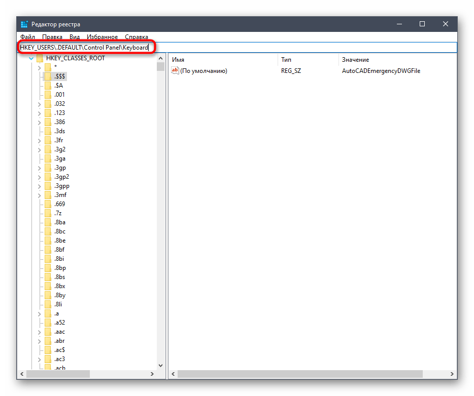 - Перейдите к следующему пути: HKEY_CURRENT_USER\Control Panel\Keyboard.