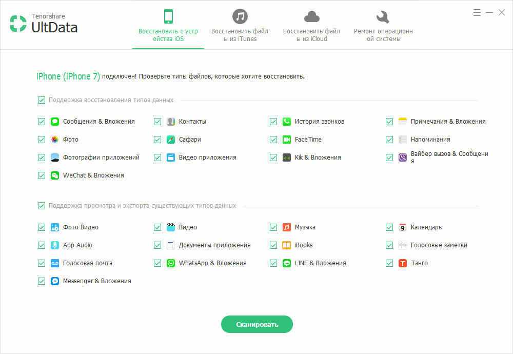 – программа заключается в восстановлении потерянных и удалённых данные, которые содержают контакты, сообщения, истории вызовов, заметки, фотографии, видео, музыки, закладки, Viber, Facetime, сообщения в WhatsApp, FaceBook и так далее. Поддерживает скапировать информацию и предсмотреть данные в ВК. Полная совместима с iOS 11.