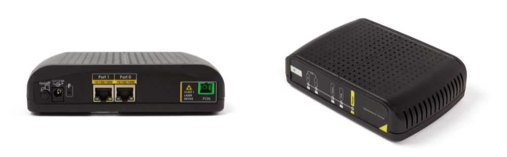 They look like routers. If you look on the right side of the left image, you’ll see ‘PON.’ That stands for passive optical network. You’ll use this port for your fiber connection.
