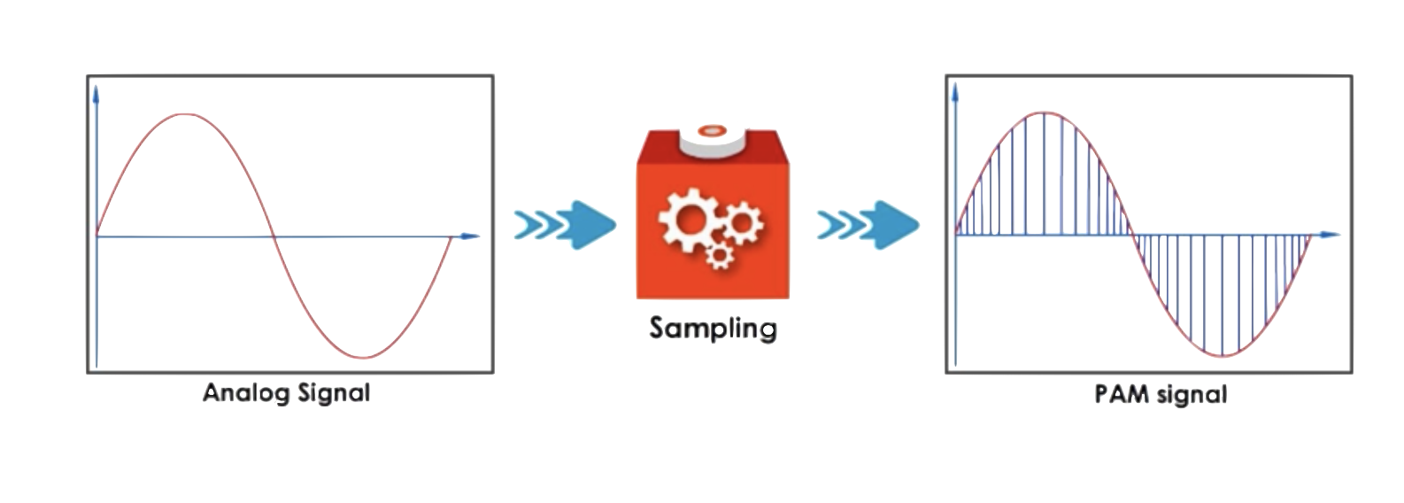 To convert an audio analog signal into a digital representation, it involves the following three steps:
