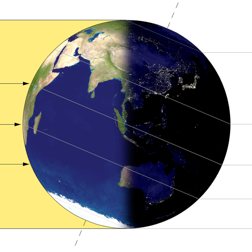 Два раза в году на обоих Полушариях планеты устанавливается относительно одинаковое сезонное состояние. Земля в это время повернута к Солнцу таким образом, что оно равномерно освещает ее поверхность. Это происходит осенью и весной в дни равноденствия.