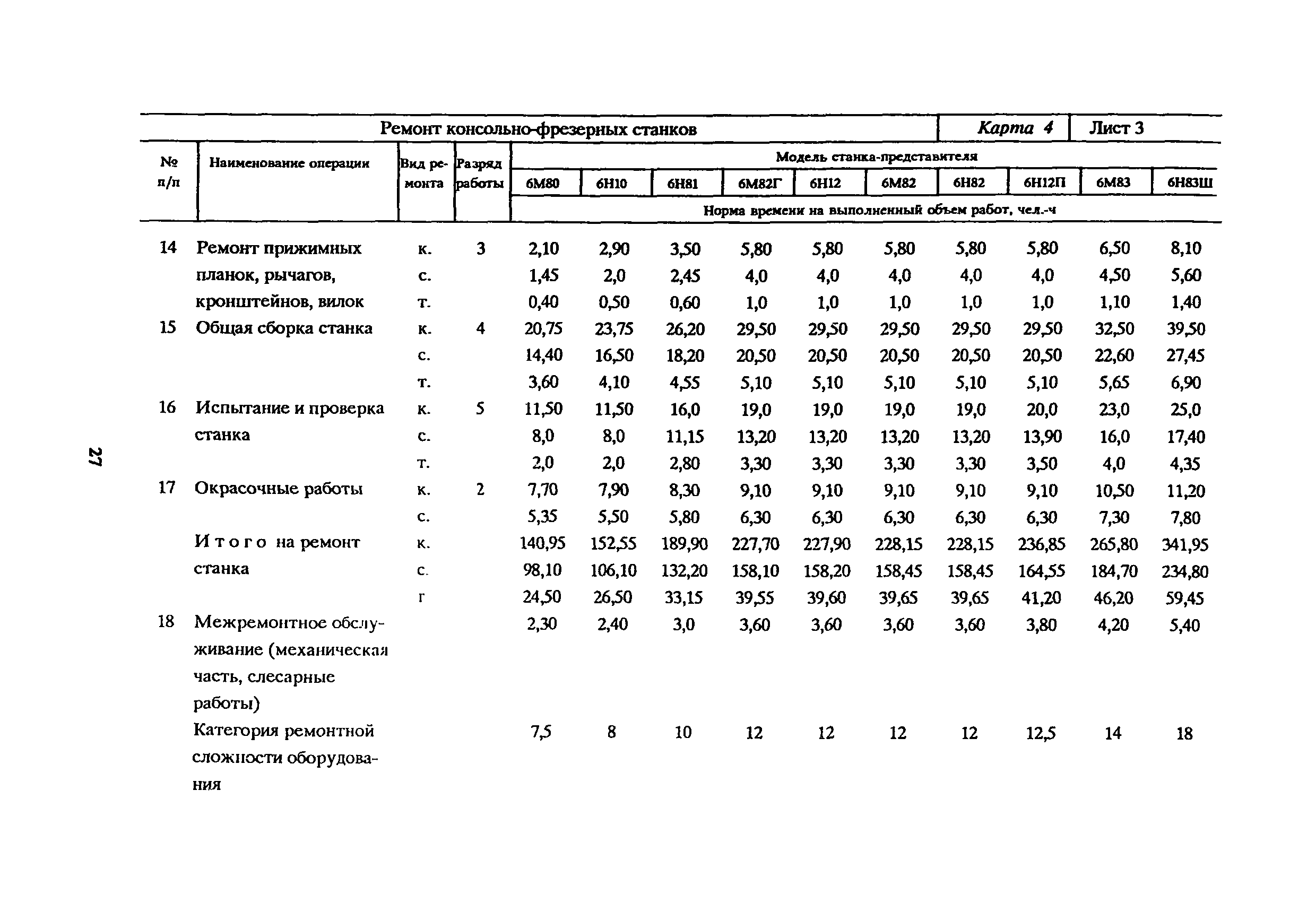 Расчет трудоемкости ремонтных работ имеет свои нюансы. В частности, значение трудоемкости определяется сложностью использованного оборудования. Техника, используемая предприятием, подразделяется на группы с различной ремонтной сложностью. Уровень сложности присваивается каждому конкретному объекту.