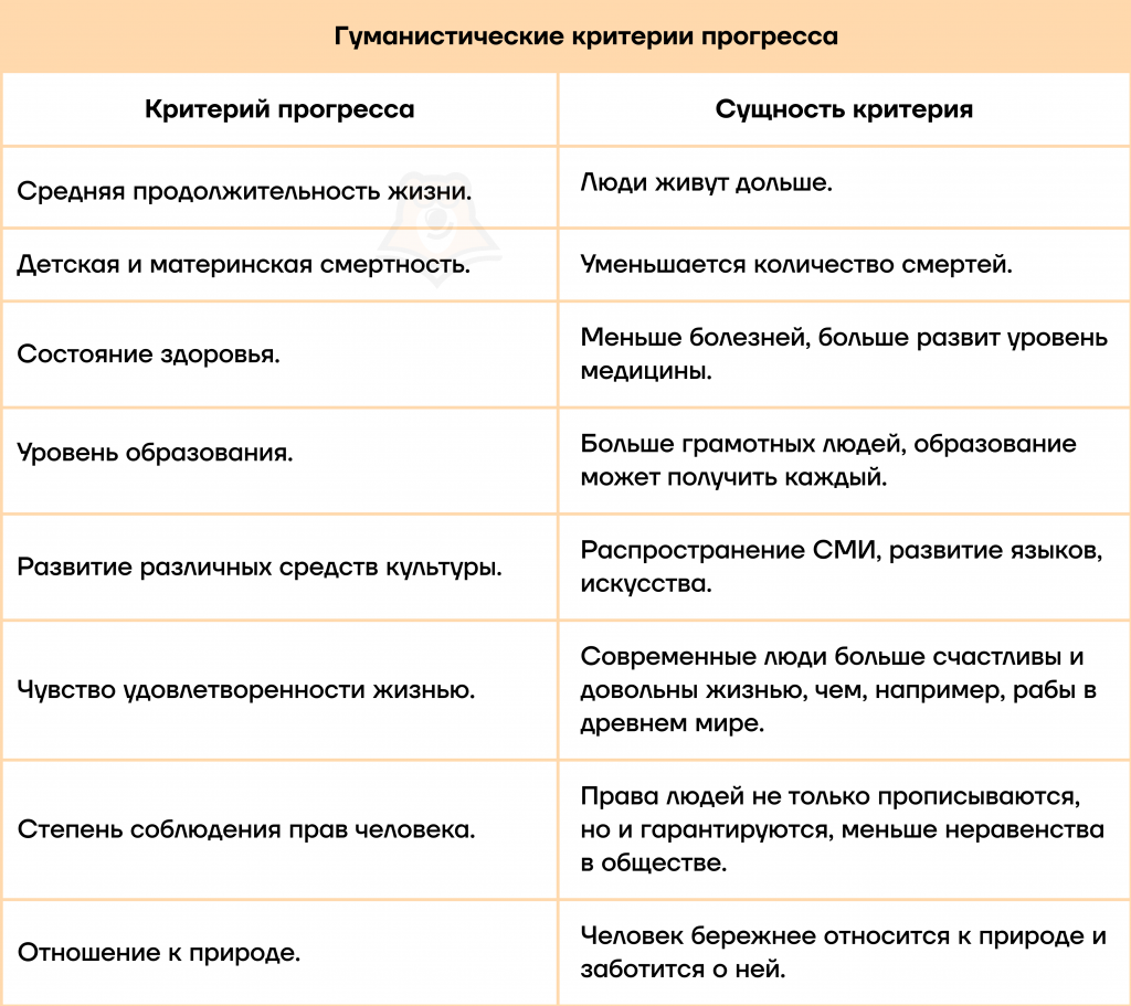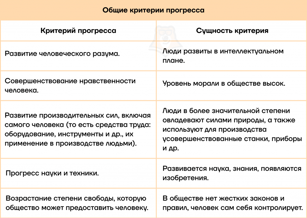 Теперь нужно разобраться, по каким критериям (признакам) можно судить, что общество движется вперед и прогрессирует