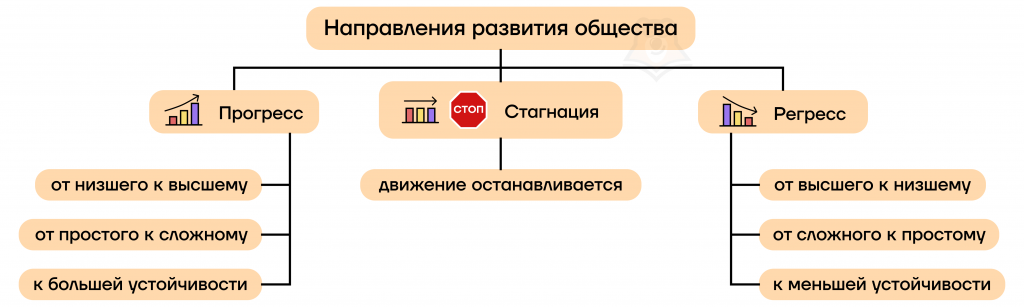 Если общество является динамичной системой, то оно должно двигаться в разных направлениях, развиваться. Именно так и происходит! Разберем направления развития общества.