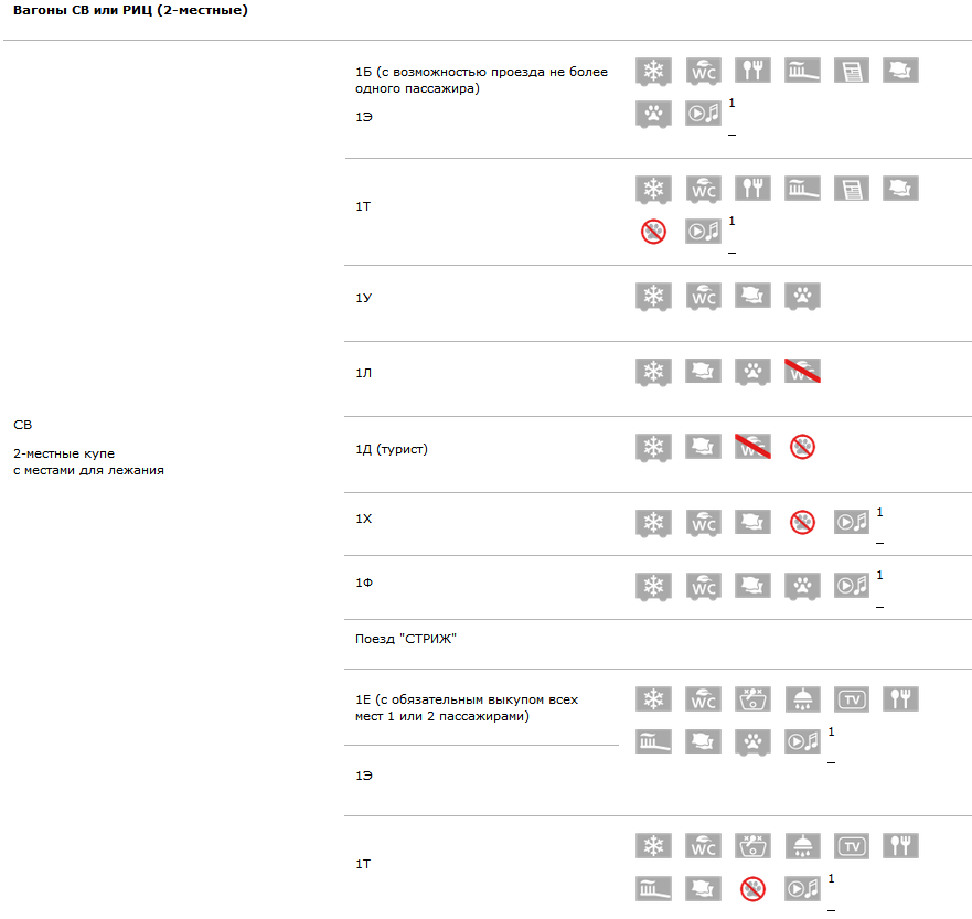 Отдельно стоит выделить вагоны 1Х, 1Д и 1Т, так как в стоимость билета будут включены все те же самые услуги, но без возможности перевозки домашнего питомца. Во всём остальном различие с люксовым классом практически отсутствует.