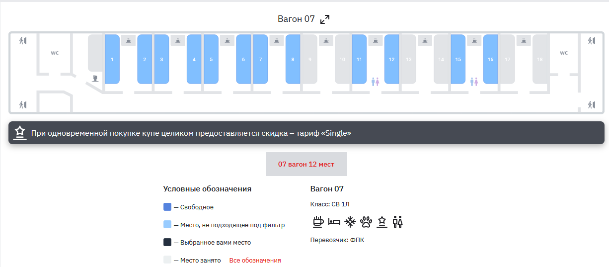 3. Можно ли забронировать купе 2к для одного пассажира?