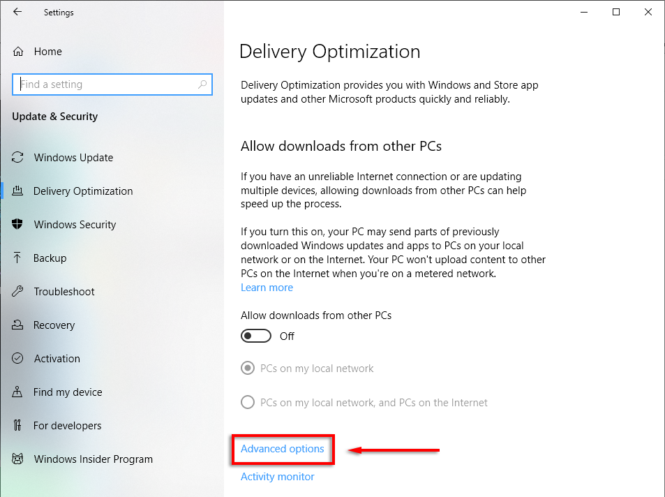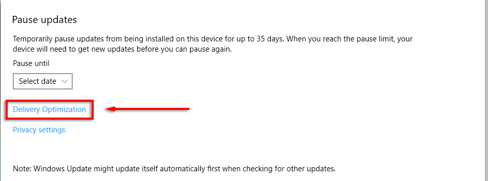 - Прокрутите вниз и выберите Оптимизация доставки(Delivery Optimization) .