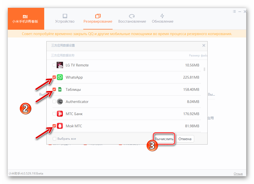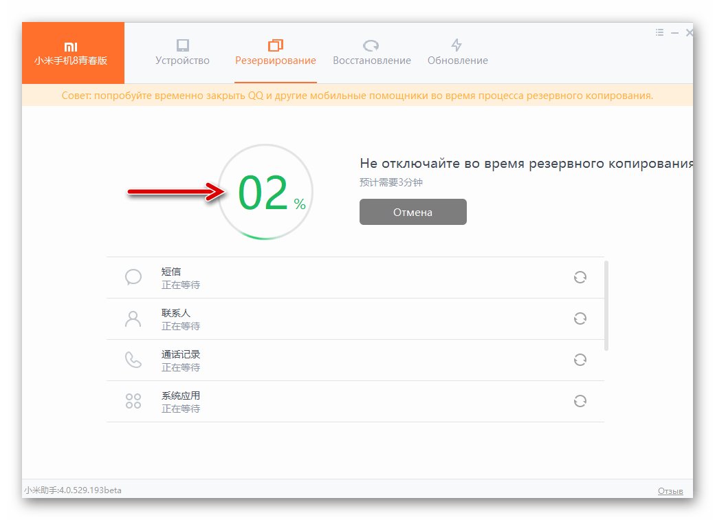 Ожидайте завершения процедуры резервного копирования. Наилучшим решением будет не использовать каким-либо образом мобильный девайс и компьютер в процессе работы Ми Фон Ассистента.