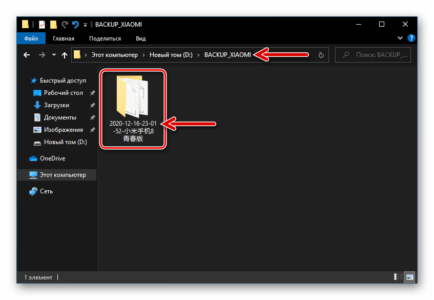 Чтобы убедиться в эффективности проведённой операции, откройте указанный при выполнении пункта №8 этой инструкции каталог в Проводнике Windows – теперь в нём наличествует содержащая резервные копии файлов со смартфона папка.