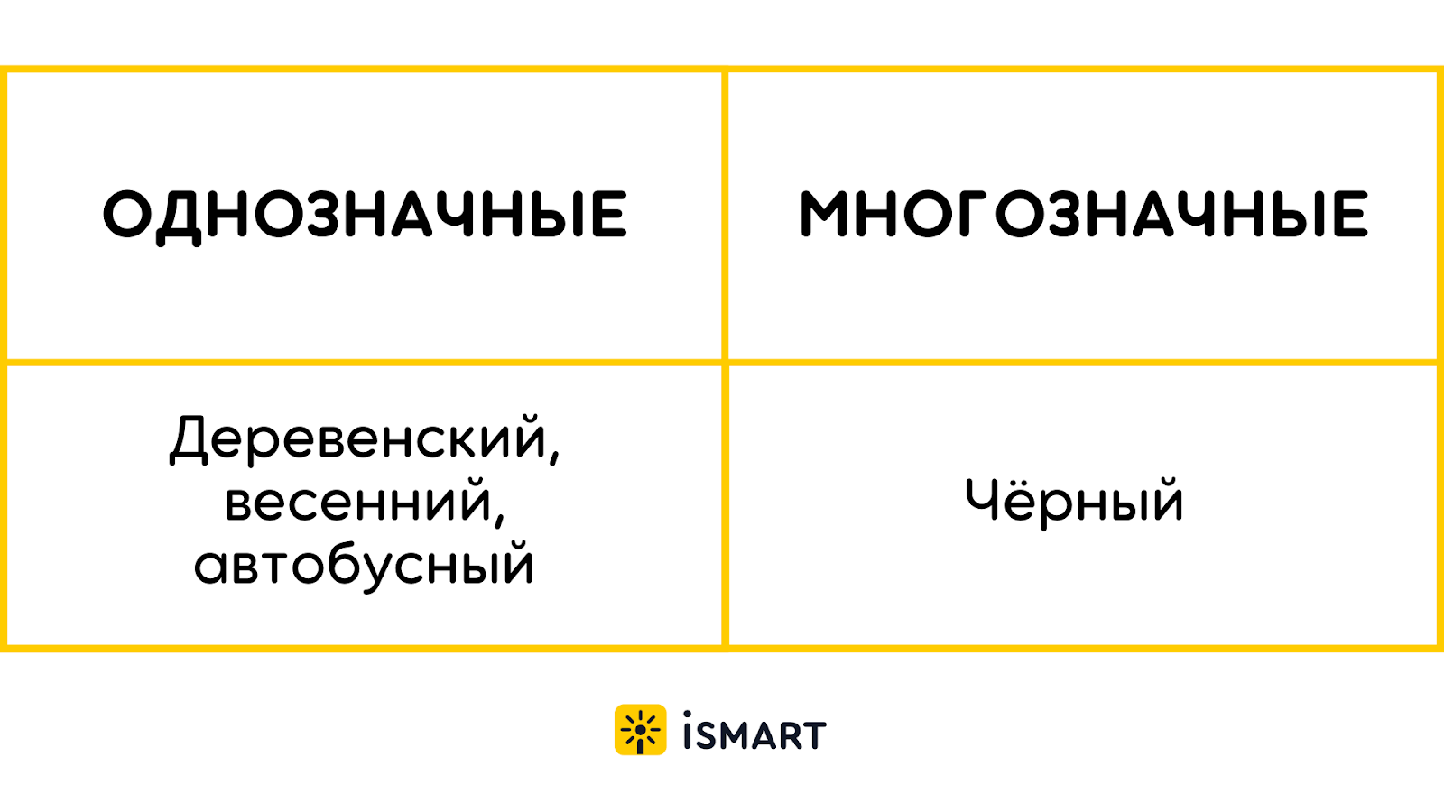 А теперь давайте попробуем распределить прилагательные на однозначные и многозначные: