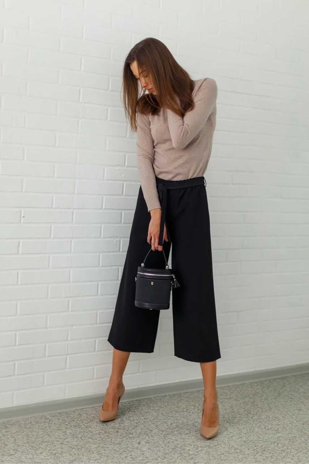 Для делового образа подойдут брюки «кюлоты», блейзер, укороченный жакет. Вдобавок, дополняют облик колготками «грифель» или используют чёрный цвет.