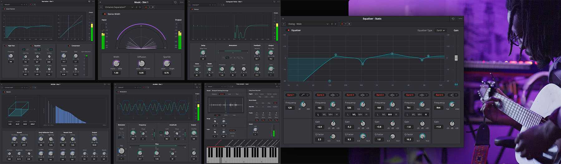 - Видео пост-производство: Fairlight audio accelerator utility позволяет производить дорожку звука для видео, включая добавление звуковых эффектов, сведение звука и редактирование голоса.