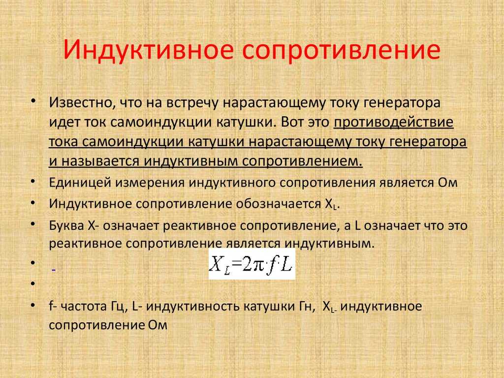 Индуктивное сопротивление является одним из видов электрического сопротивления и возникает в цепи при протекании переменного тока через катушку с проводником.