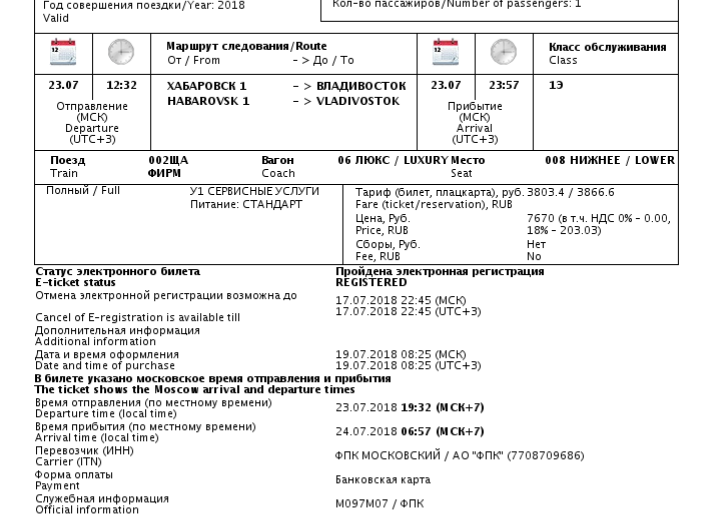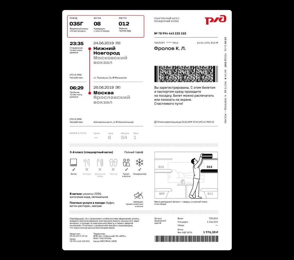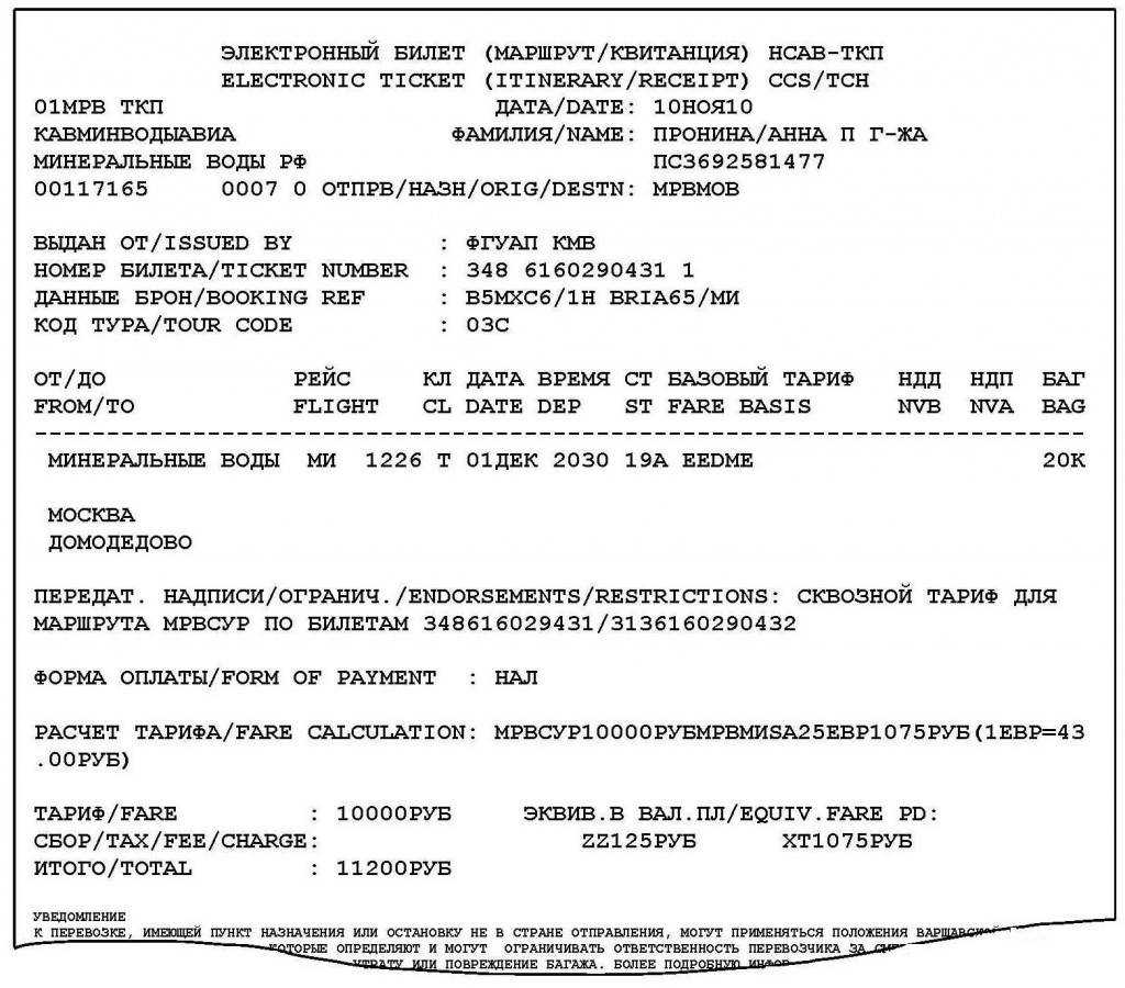 В авиабилетах российских перевозчиков публикуется код бронирования, тарифный план, предусматривающий набор определенных услуг, а также дата и время вылета, номер выхода на посадку и запланированное время прибытия в пункт назначения (местное).