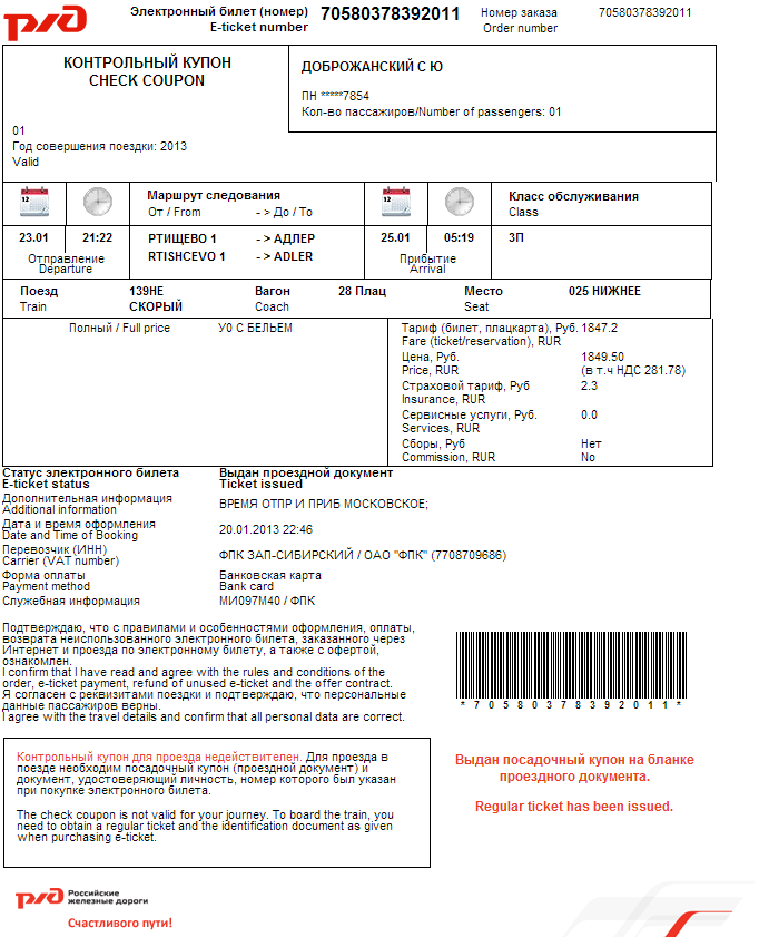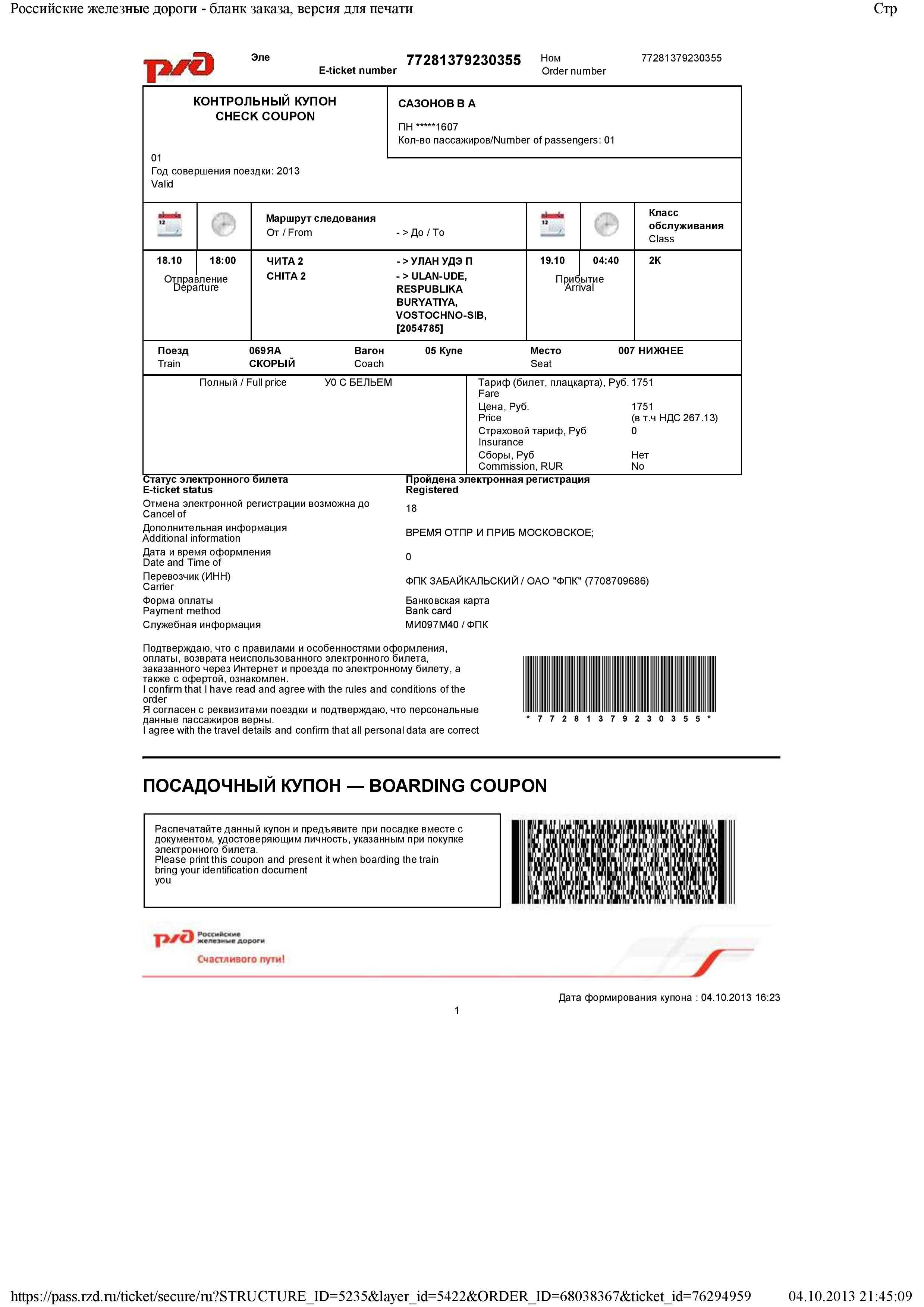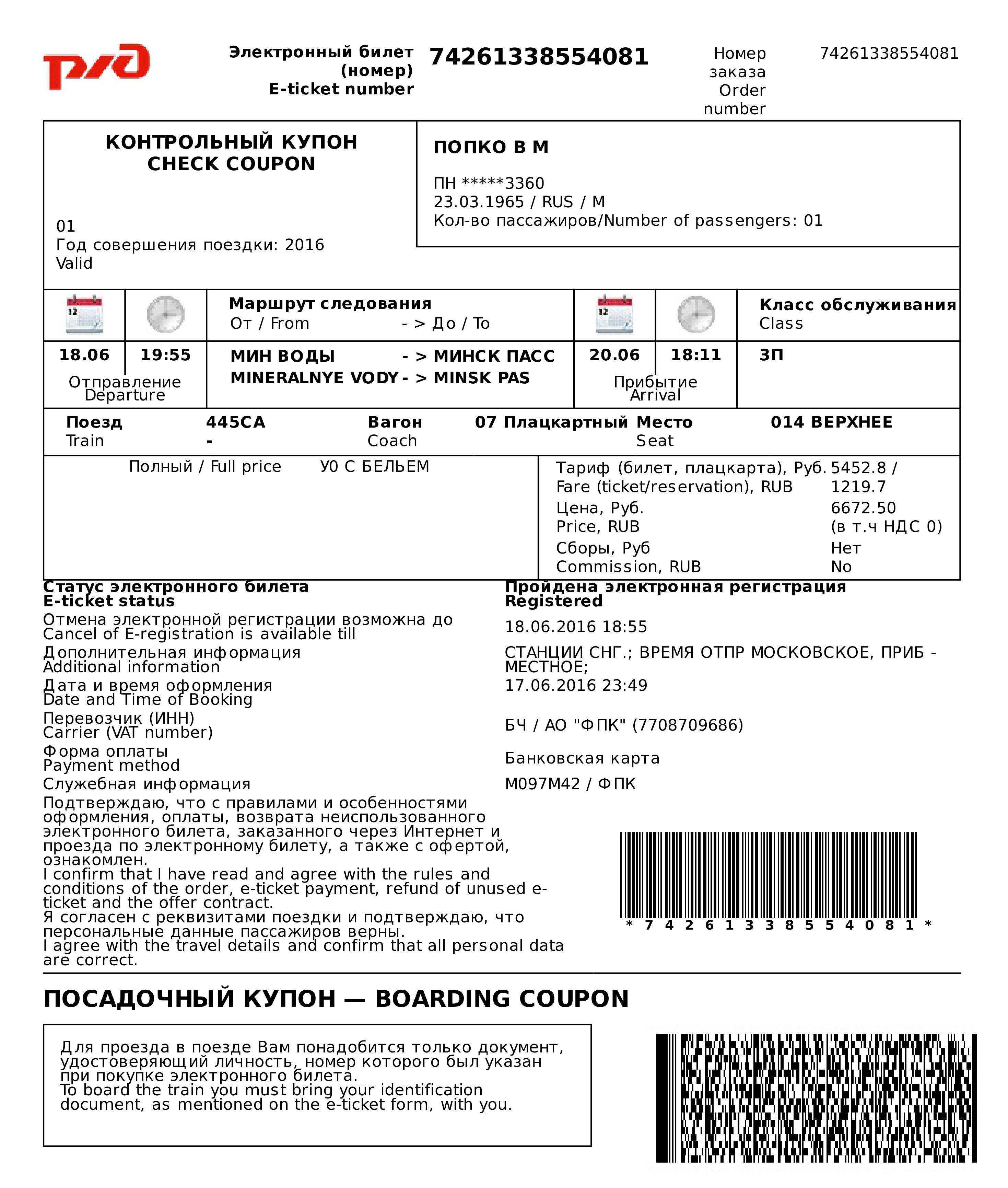 Расшифровка купонного авиабилета с посадочным талоном — Automated Ticket / Boardind Pass (ATB)