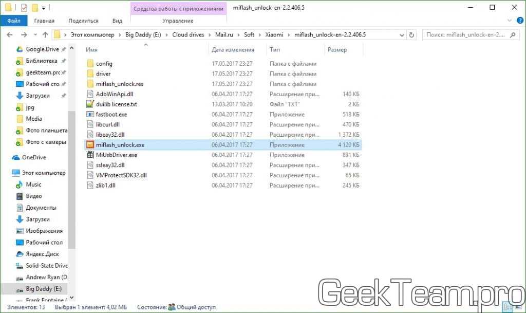 Разархивируем скаченный архив в папку и заходим в неё. Если у вас ещё не установлен драйвер, то запустите файл MiUsbDriver. При наличии установленных драйверов, запускаем файл miflash_unlock.