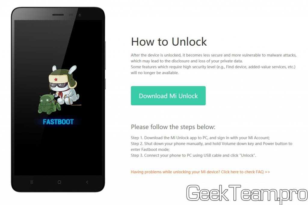 Разблокировка с помощью Mi Unlock от Xiaomi