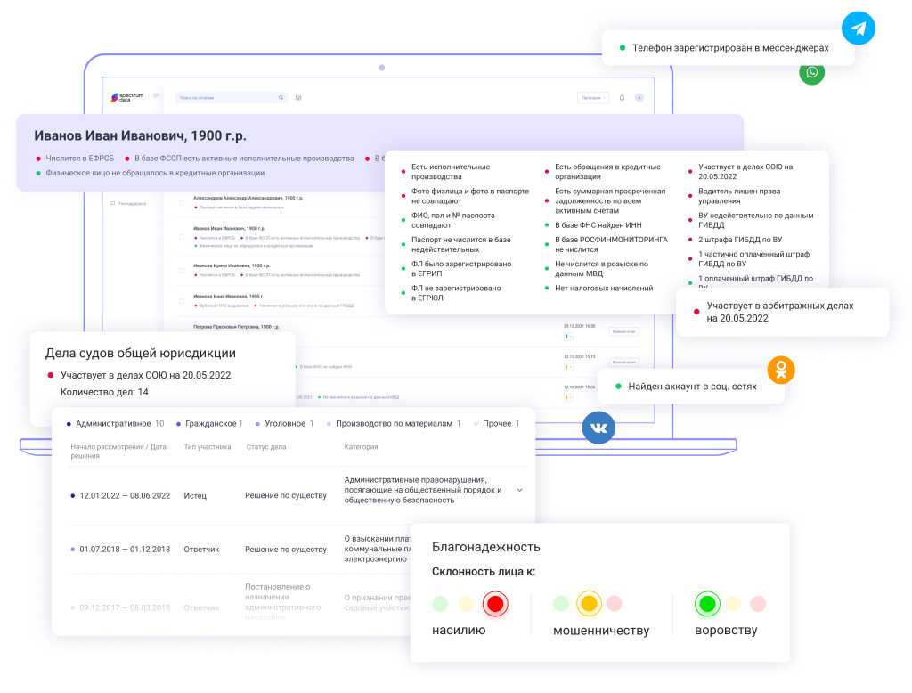 Важной частью оценки новичков и действующих сотрудников становится проверка на благонадежность. Это позволяет обезопасить компанию от банкротов, людей с судимостями, большими долгами и т.д. . Проверить уровень благонадежности соискателей и сотрудников можно быстро и эффективно с помощью сервиса SpectrumData.