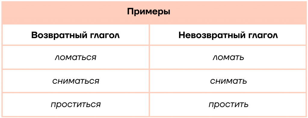 Важно: все возвратные глаголы являются непереходными, а невозвратные могут быть как переходными, так и непереходными. Так, многие переходные глаголы можно перевернуть, изменив вид связи в словосочетании: