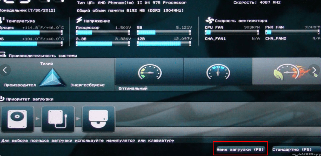 Нам нужно будет сначала проверить — «видит» ли компьютер подключенный жесткий диск. Это просто. На компьютерах с UEFI биос меню выглядит по другому, и можно посмотреть то что нам нужно в «меню загрузки»: