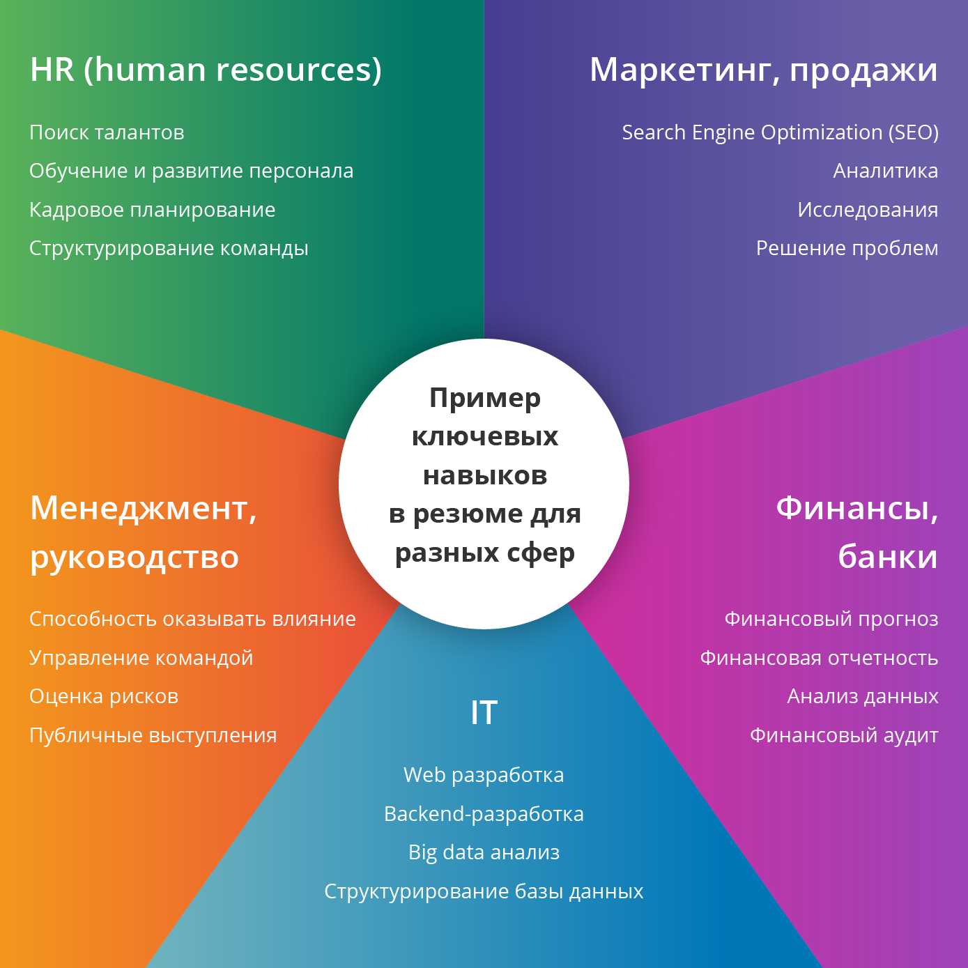 Каждая отдельная специальность характеризуется определенными способностями. Среди представленных непременно найдутся именно те, которые подойдут Вам и той должности, которая стала Вашим выбором. Эти умения могут быть использованы для включения в резюме.