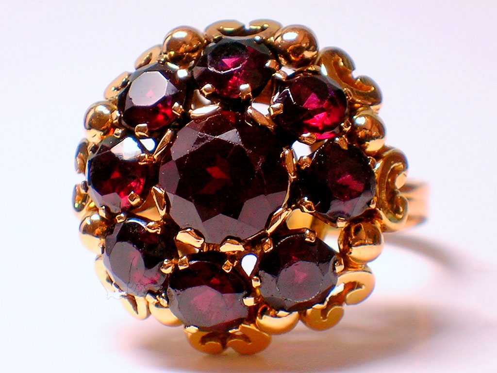 - Гранат. Этот минерал не меняет цвет под воздействием солнечных лучей, отличается тусклым блеском, тогда как рубин сияет как бриллиант. Для граната характерна равномерная, глубокая, с минимальным количеством включений окраска. Внутреннюю полость рубина можно отличить по черточкам и точкам. Гранат имеет свойство намагничиваться. Положив камень на чашу весов и поднеся к нему магнит, можно заметить увеличение его массы.