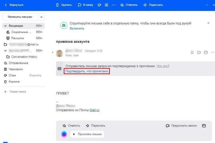Это значит, что данное сообщение важно для отправителя и он ожидает подтверждение о прочтении от его адресата. Жмем на ссылку «Подтвердить, что прочитано»
