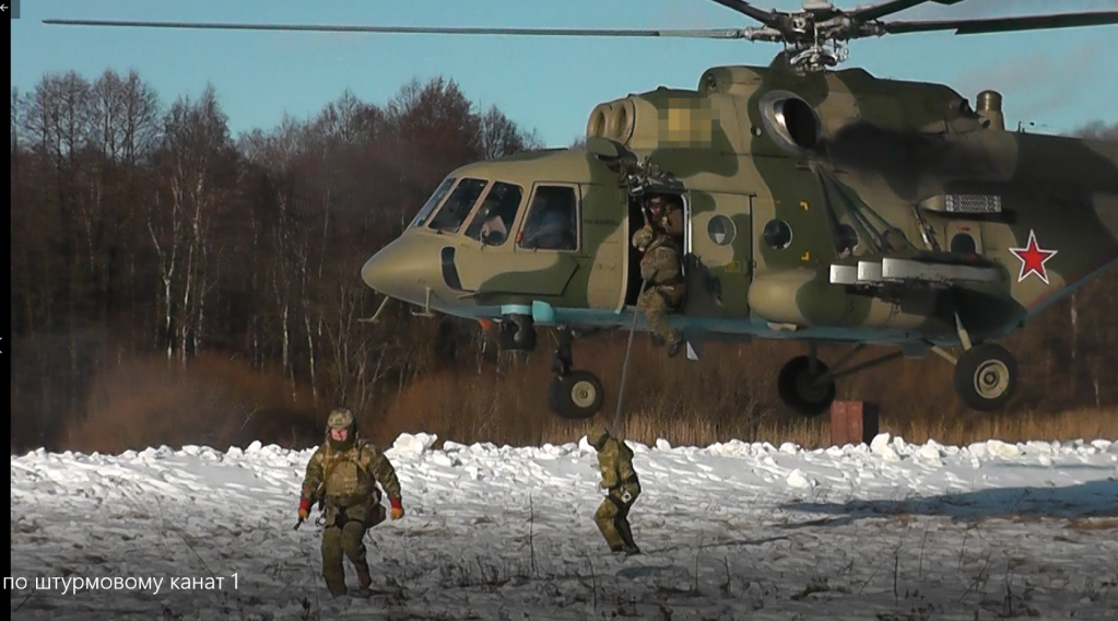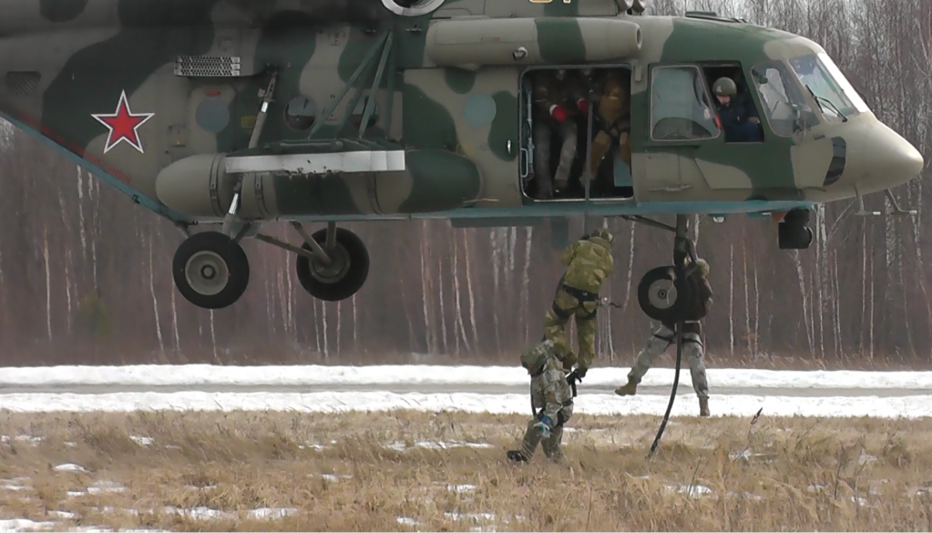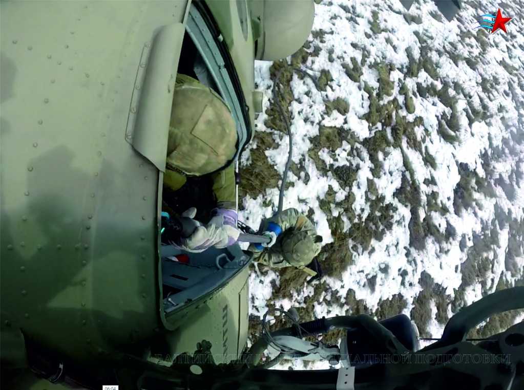 Десантирование «По-штурмовому», напомним есть два вида: посадочное и беспосадочное. В выполнении не сложное, но до сих пор нарушаются правила авиационной безопасности, которыми к сожалению пренебрегают. Множество постановочных видео с десантированием «по-штурмовому» осуществляется с трапом, а его не может быть при работе, и так далее, и так далее. При работе с данным подразделением, посадочное десантирование не отрабатывалось, т.к. в жизни это происходит на неизвестную площадку, действия должны быть динамичными и самое главное обеспечивать безопасность десантников. Поэтому в работе использовался беспосадочный способ десантирования с висением на месте и в движении, в одну дверь и две двери с использованием десантного каната 6 м, т.к. он и обеспечивает безопасное приземление на неизвестные площадки. Десантирование выполнялось с высоты 2,5-4 метра, со снаряжением и оружием