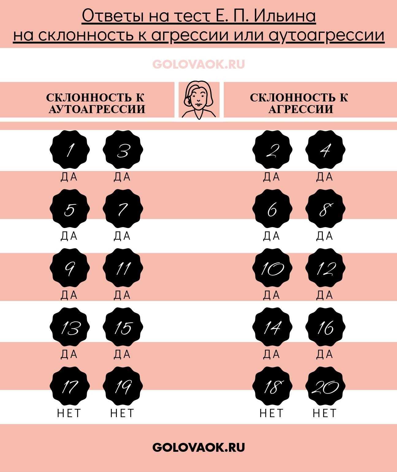 - Смешанная агрессия — агрессия, направленная на окружающих, вызывает у ребенка чувство вины и перенаправление негативных побуждений на себя. Более 5 совпадений по каждой шкале или примерно равное количество баллов говорит о высокой вероятности наличия смешанной агрессии.