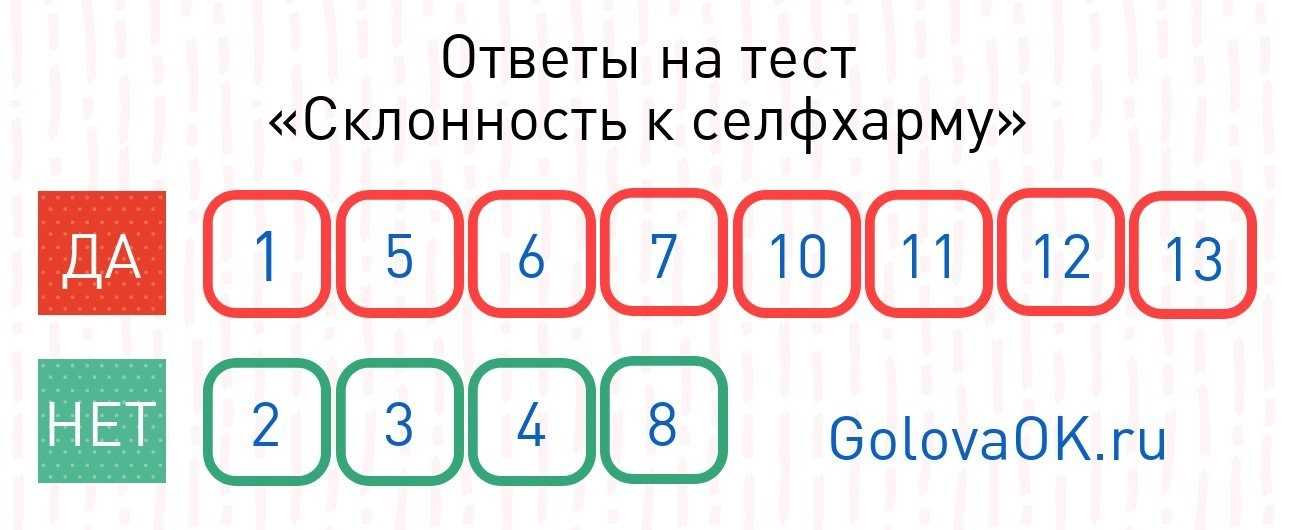 Шкала для определения склонности к селфхарму (подросткам проходить самостоятельно)