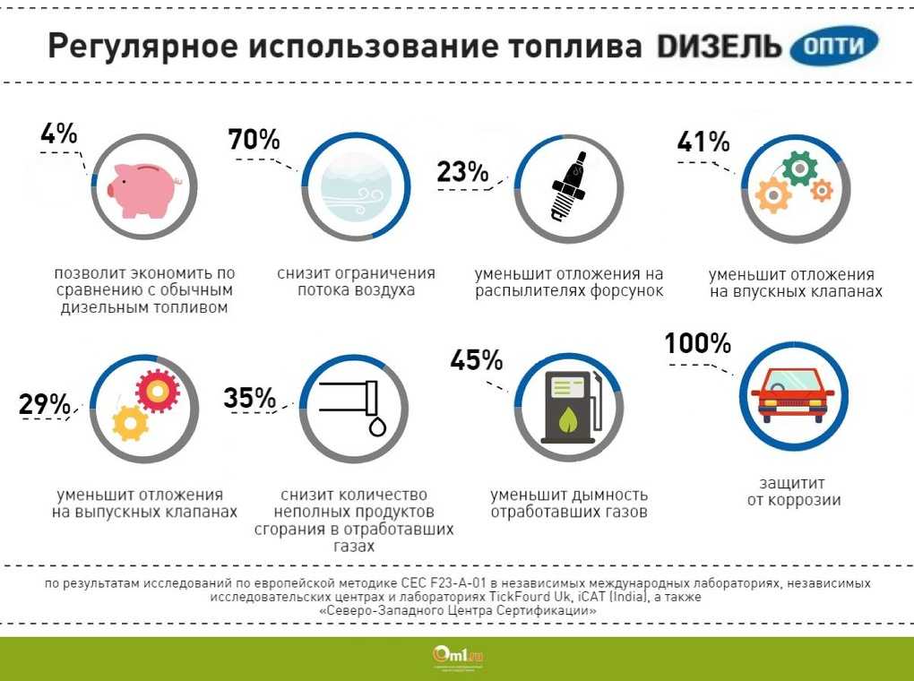 В итоге в тестах на обоих двигателях «Дизель ОПТИ» показал очень хороший результат. С точки зрения потребителя это означает, что «Дизель ОПТИ» само по себе способствует поддержанию чистоты форсунок — деталей, от которых зависит надежная работа двигателя и мощность, которую он развивает. Кроме того, по своим эксплуатационным свойствам оно соответствует требованиям ВТХ, что делает «Дизель ОПТИ» топливом, которое сами автоконцерны для своих машин считают идеальным.