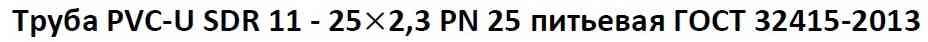 Изготовленная из НПВХ, с номинальным наружным диаметром 25.0 миллиметров, номинальная толщина стенки 2,3 миллиметра, номинальным давлением PN25.