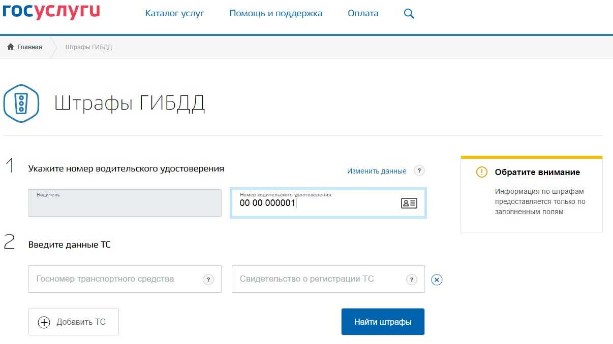 Для уплаты автомобильных и дорожных штрафов автолюбителю потребуется перейти в соответствующий блок портала. После введения сведений из удостоверения водителя и свидетельства о госрегистрации ТС пользователь сможет получить информацию об имеющихся штрафах и погасить их.