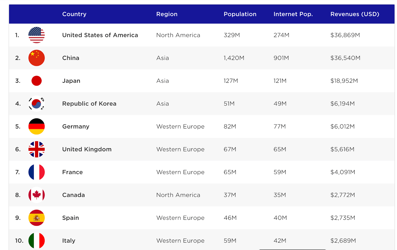 Топ-10 стран, тратящих деньги на игры. Источник.