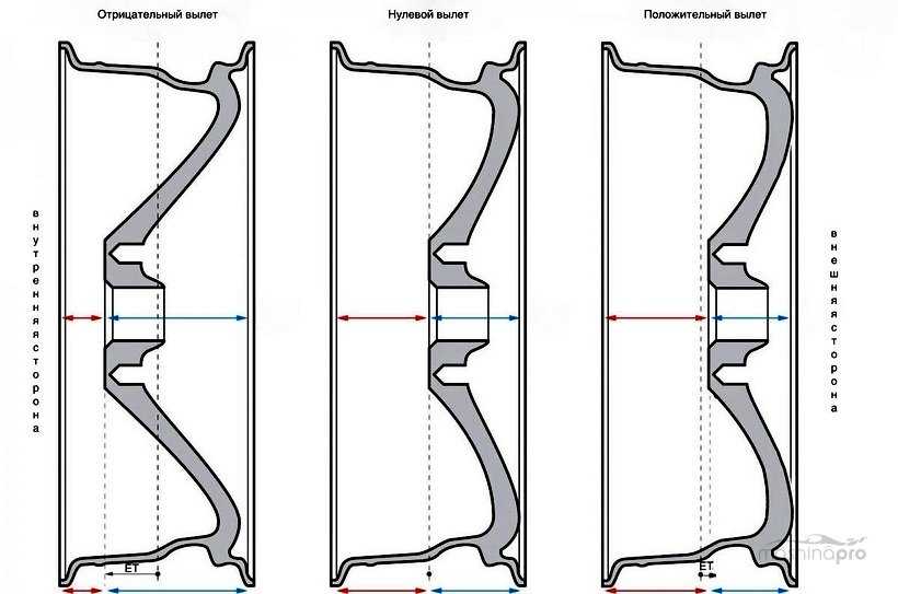 Вылет является важнейшим геометрическим параметром колёсного диска. И это отнюдь не преувеличение. Причину этого мы и попытаемся объяснить, как говорится, на пальцах. Итак, если автомобильный диск не подходит по диаметру, числу отверстий под крепёжные болты или же интервалом между этими отверстиями, то его попросту нельзя будет одеть на ступицу. Но обычно подобные расхождения со штатным (заявленным автопроизводителем) вылетом не очень большие, что позволяет без трудностей провести монтаж. Будет ли в этом случае колесо на все сто процентов выполнять свою роль? И если нет, то к чему подобный эксперимент приведет? В сети интернет на тематических сайтах владельцы автотранспорта нередко дискутируют на тему, насколько может разниться вылет устанавливаемого диска от рекомендованного, и если это расхождение допустимо, то в какую сторону? Зачастую высказываемые точки зрения имеют диаметрально противоположные направления.