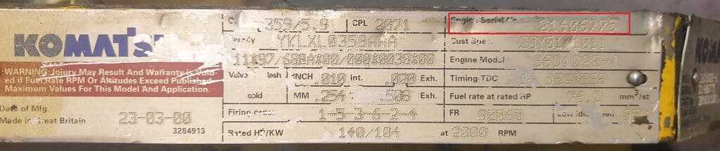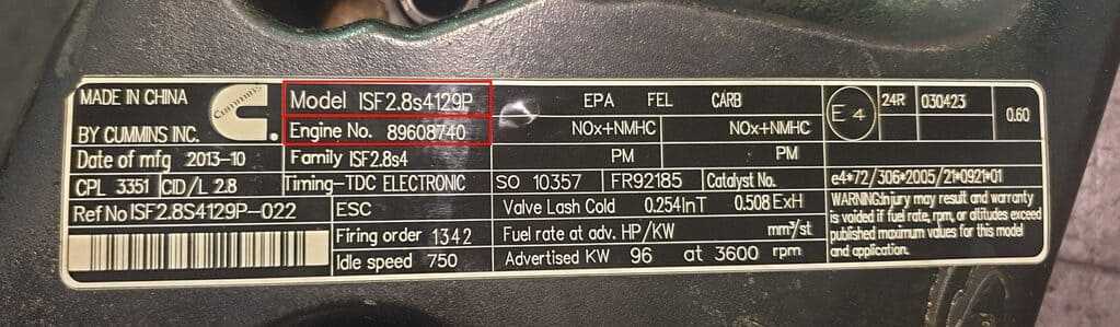 Первым делом осмотрите двигатель. На подавляющем большинстве моторов Cummins есть специальный паспортная табличка с указанием модели и серийного номера двигателя, дате производства, мощности и т.п. Этот шильдик может находиться на самой клапанной крышке (Cummins ISB, ISF), на картере шестерен (Cummins BTA, C8.3, ISL), на проставки клапанной крышки (Cummins M11). На старых моторах за время эксплуатации эта табличка может быть повреждена, а информация на ней быть нечитабельной.