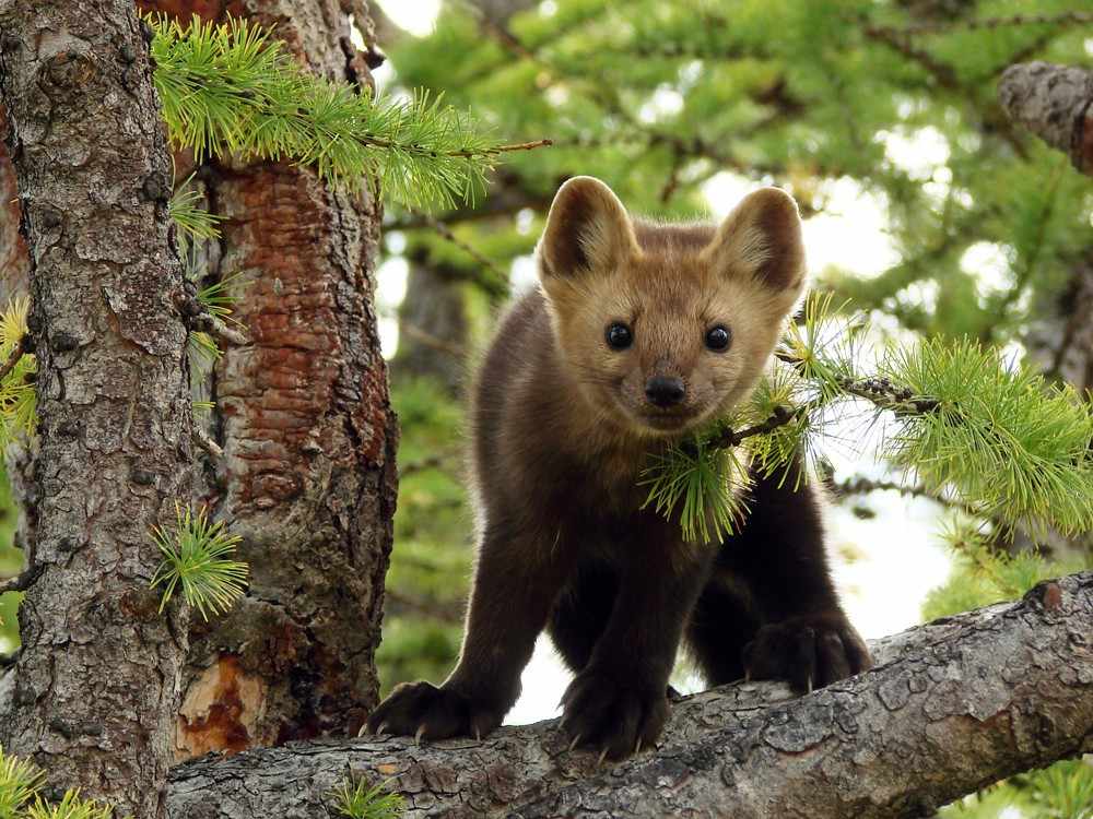 Перечень обитателей тайги был бы неполным без этого шустрого и ловкого зверька. Соболь обитает в сибирских таежных лесах, преимущественно в кедровых. Охотится на мелких грызунов — белок, бурундуков, мышей, может напасть на зайца, глухаря или рябчика. До недавнего времени соболь являлся ценным промысловым зверем из-за своей мягкой густой шкурки, но теперь на его добычу вводятся ограничения.