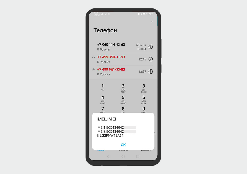 Во-первых, IMEI записывают в прошивку телефона, то есть в его программное обеспечение. Эту информацию можно посмотреть в любой момент с помощью запроса *#06#, который нужно набрать на клавиатуре устройства. Код *#06# одинаково хорошо работает как на кнопочных телефонах, так и на современных смартфонах с сенсорным экраном.
