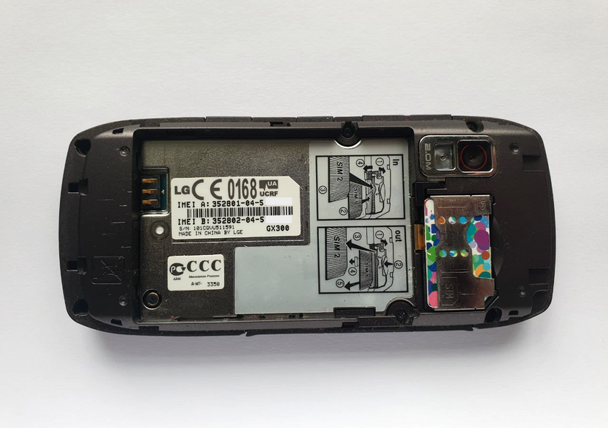 У кнопочного LG GX300 IMEI указан на корпусе телефона, под аккумулятором. В этой модели две SIM-карты, поэтому IMEI тоже два