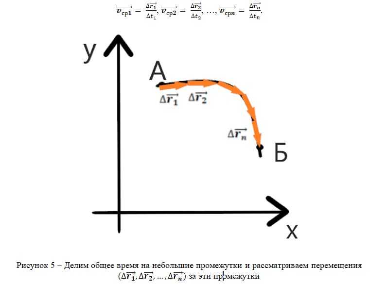 Идея состоит в том, чтобы пренебречь изменением скорости во время рассматриваемого промежутка времени, а рассматривать только начальный и конечный момент. Такое измерение удобно, если нам необходимо оценить общий результат движения.