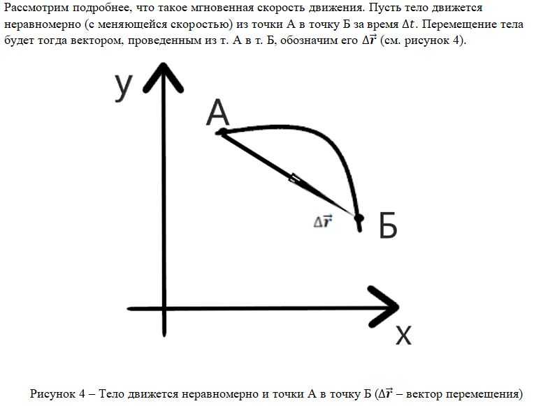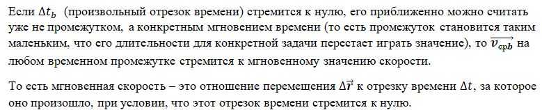 Мгновенная скорость – это скорость тела в выбранный конкретный момент времени.