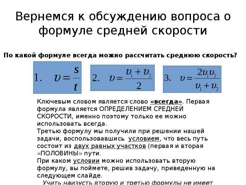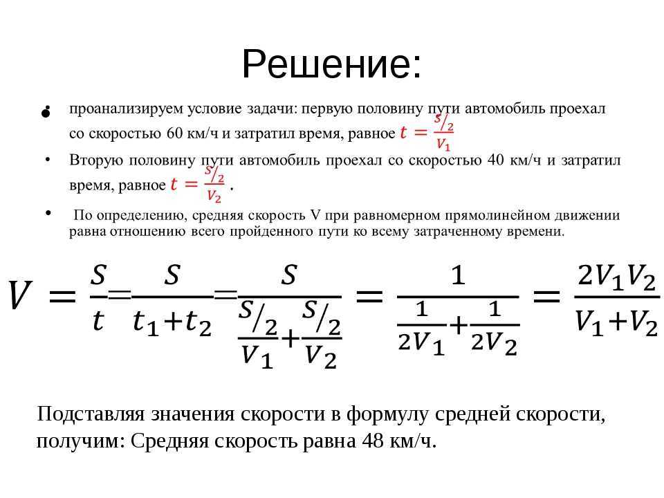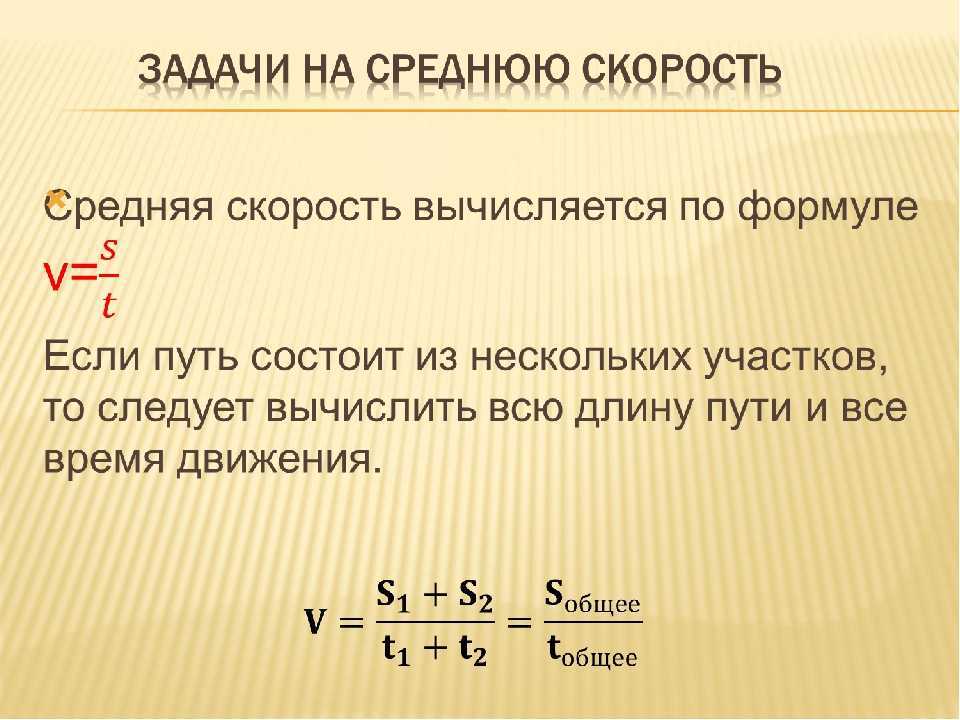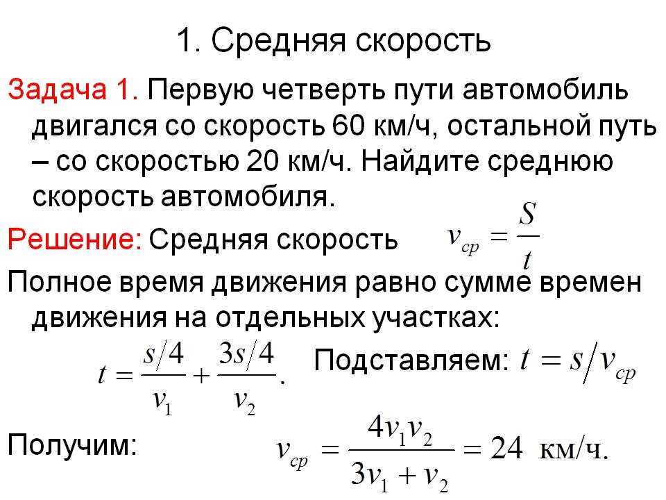 Вернемся к примеру, предложенному в самом начале, когда часть пути автомобиль проехал с одной скоростью, а другую — с иной. Такой вид задач очень часто используется в школьной программе. Поэтому, когда ваш ребенок попросит вас помочь ему с решением подобного вопроса, вам будет просто это сделать.