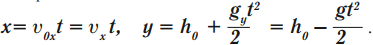 - равноускоренного движения по вертикали с ускорением свободного падения \( g \) и без начальной скорости \( v_{0y}=0 \).