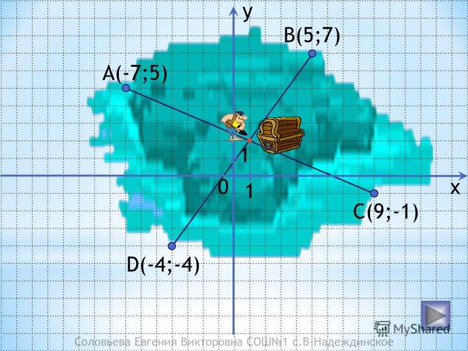 Соловьева Евгения Викторовна СОШ1 с.В-Надеждинское y x (-6;-9) (-4;-2) (7;-3) (9;5) (-16;-1) (-5;-5) (-11;5)