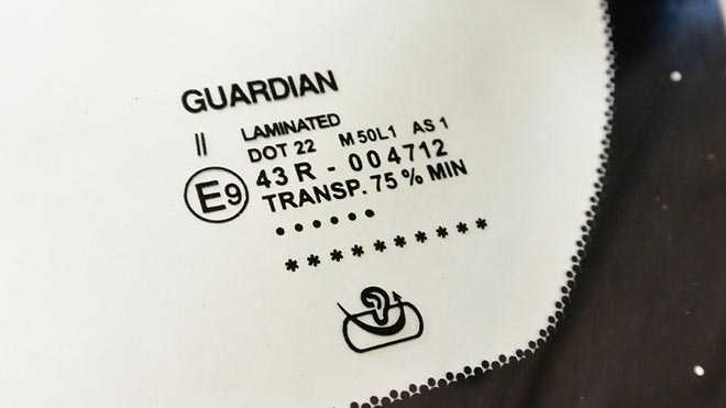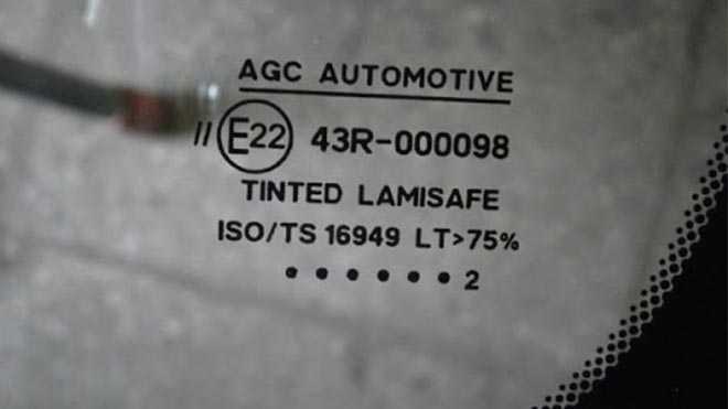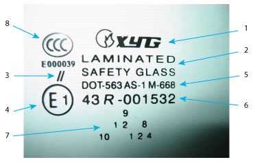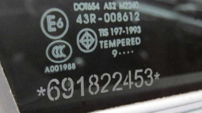 На всех заводских автостеклах есть метки. Сегодня их выполняют из специальных материалов. Производители используют пять вариаций маркировок, которые должны содержать следующую информацию: