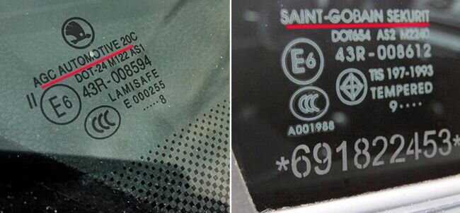 Производители автомобильного стекла обычно используют два типа маркировки: