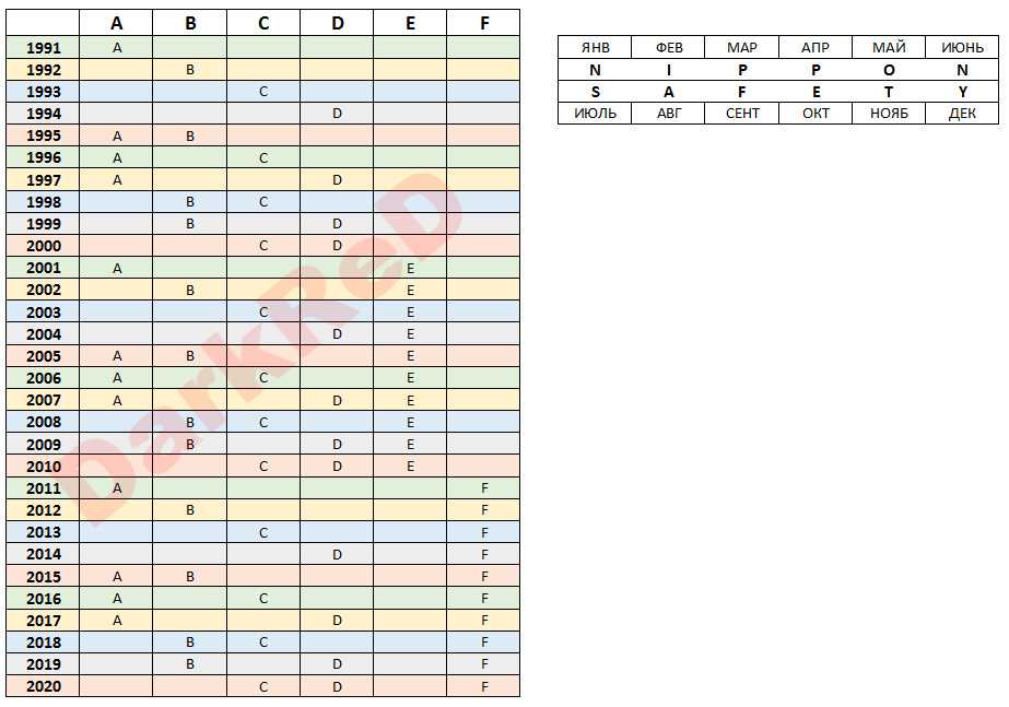 - Года с 1971 по 1979 и с 2001 по 2009 указаны цифрами 1-9;