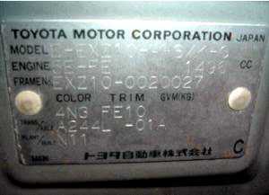 Рассмотрим на примере автомобиля Тойота, как расшифровывается номер. Как правило, комбинация буквенно-цифровых значений из 4-6 символов определяют в этом японском автомобиле марку остова. Сам номер представлен бывает во втором блоке, состоящем из 7 чистых цифр или буквенно-цифрового значения из 7 символов.