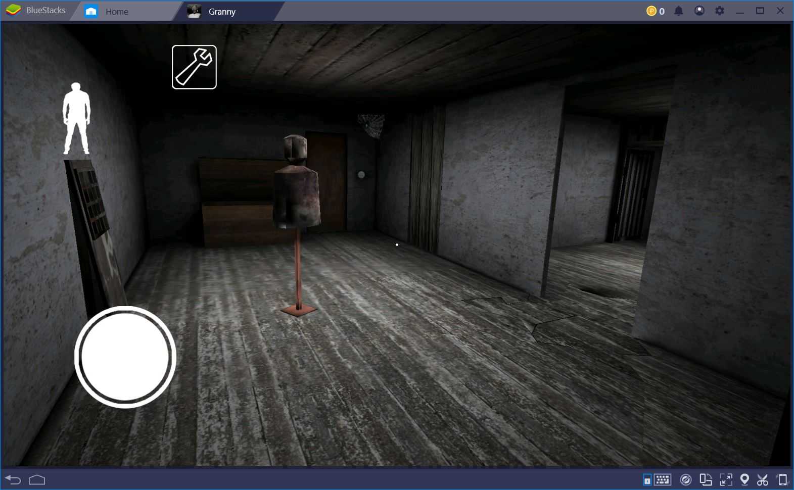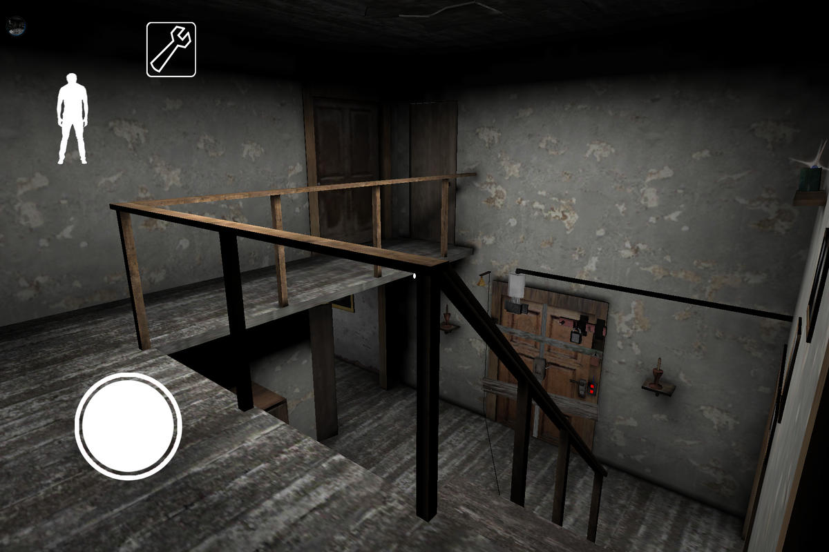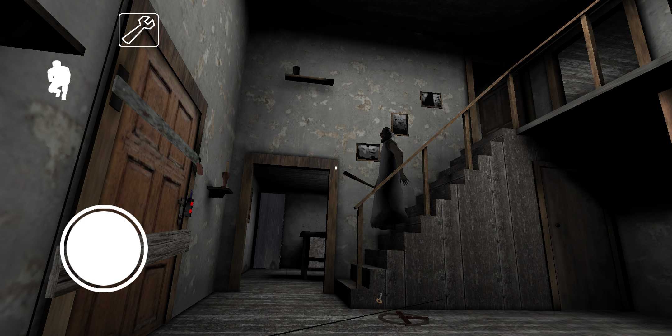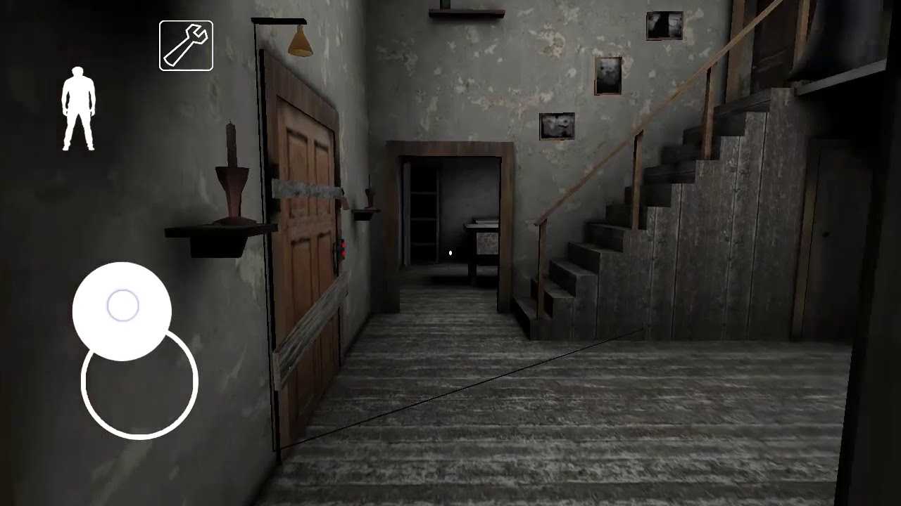 Около входной двери нужно действовать осторожно. Granny часто ходит по первому этажу, поэтому наткнуться на нее не составит труда. Дополнительную опасность представляет растяжка — пройдя по ней сработает колокольчик, который услышит старуха