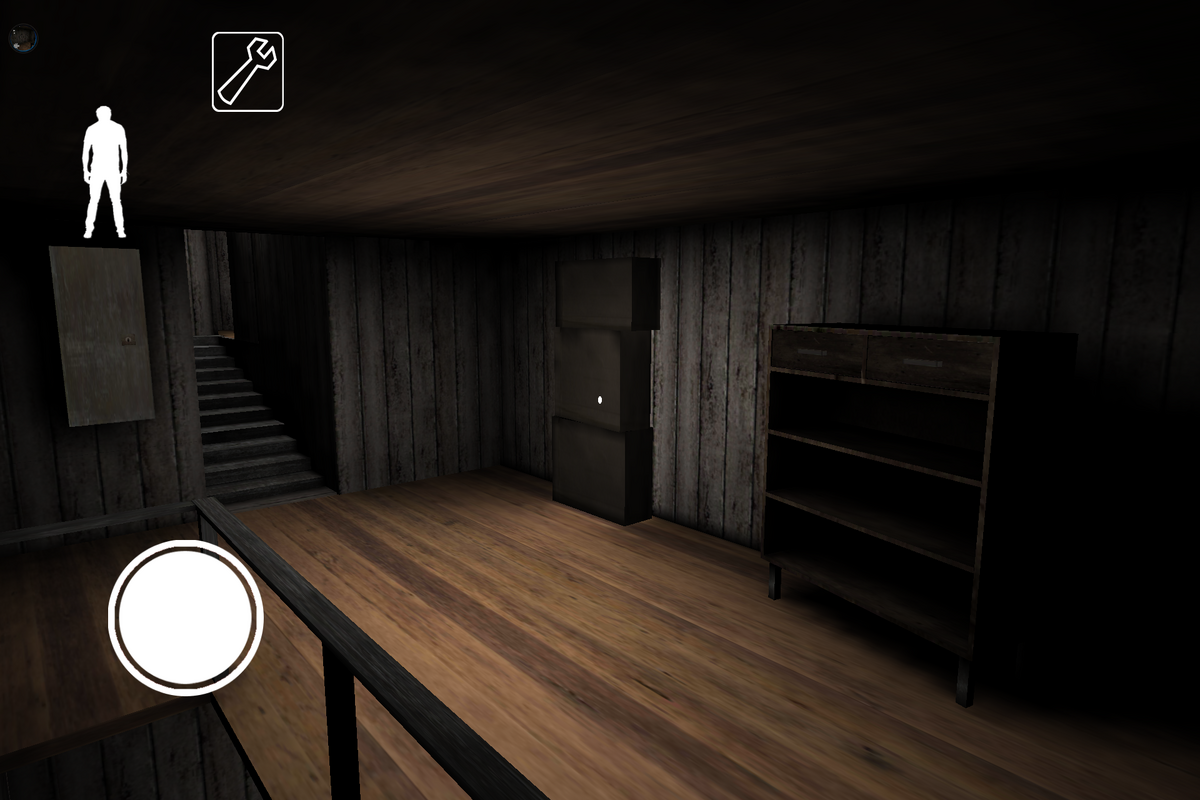 - Спустившись вниз по запасной лестнице, игрок окажется в маленьком коридорчике. Через него можно попасть в подвальное помещение. Чтобы оказаться из стартовой комнаты геймеру потребуется несколько секунд, а вот бабуле придется обходить весь дом.